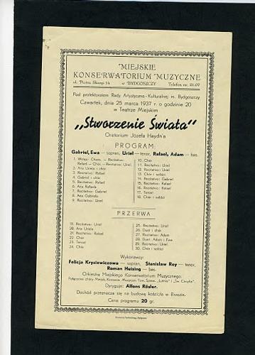 - Koncert Miejskiego Konserwatorium Muzycznego "Stworzenie świata" Haydna (1937) Afisz Szczegóły