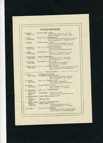 Publiczny Popis Uczniów Miejskiego Konserwatorium Muzycznego (1937)Program